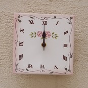 Many ステンシルローズ スクエアタイルクロック