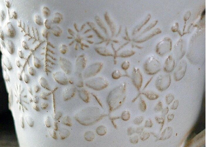 持ち手にもお花がついているのがポイント。ポコポコしたレリーフに愛着がわきます。